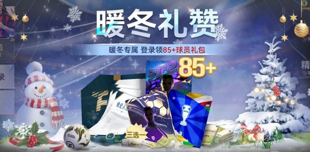 登录游戏即可获得暖冬专属登录礼,最高可获得【85+】转会/欧洲杯/金童主题三选一球员包。
