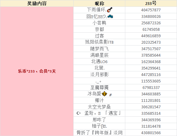 随机抽取二十名正确参与的用户送出乐币*233、会员*3天