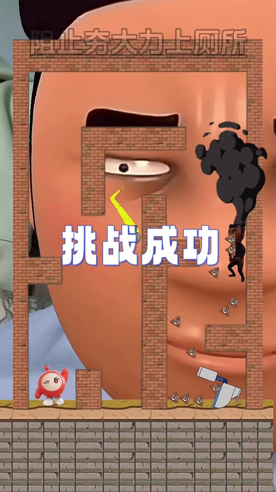 玩家分享自己成功通关魔性小游戏《阻止夯大力上厕所》的内容,通过投掷炸弹完成阻止夯大力上厕所的挑战,这是一款趣味十足的消遣小游戏。