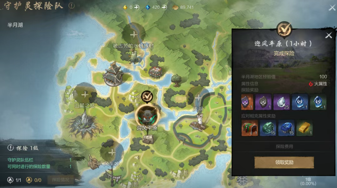 此外,守护灵具有不同的属性,选择与探险区域相克属性的守护灵进行探险,可以额外获得属性奖励。