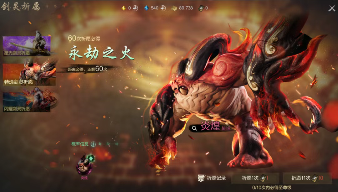 特选剑灵祈愿券的作用是可抽取永劫之火:炎煌传说哦!60次必得!