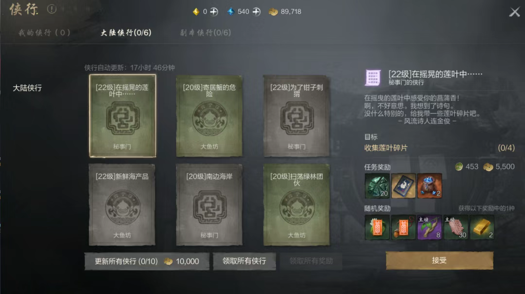 侠行任务在前期能够帮助灵芝们快速升级,而非升级期的侠行任务价值则体现在其丰富的奖励上。