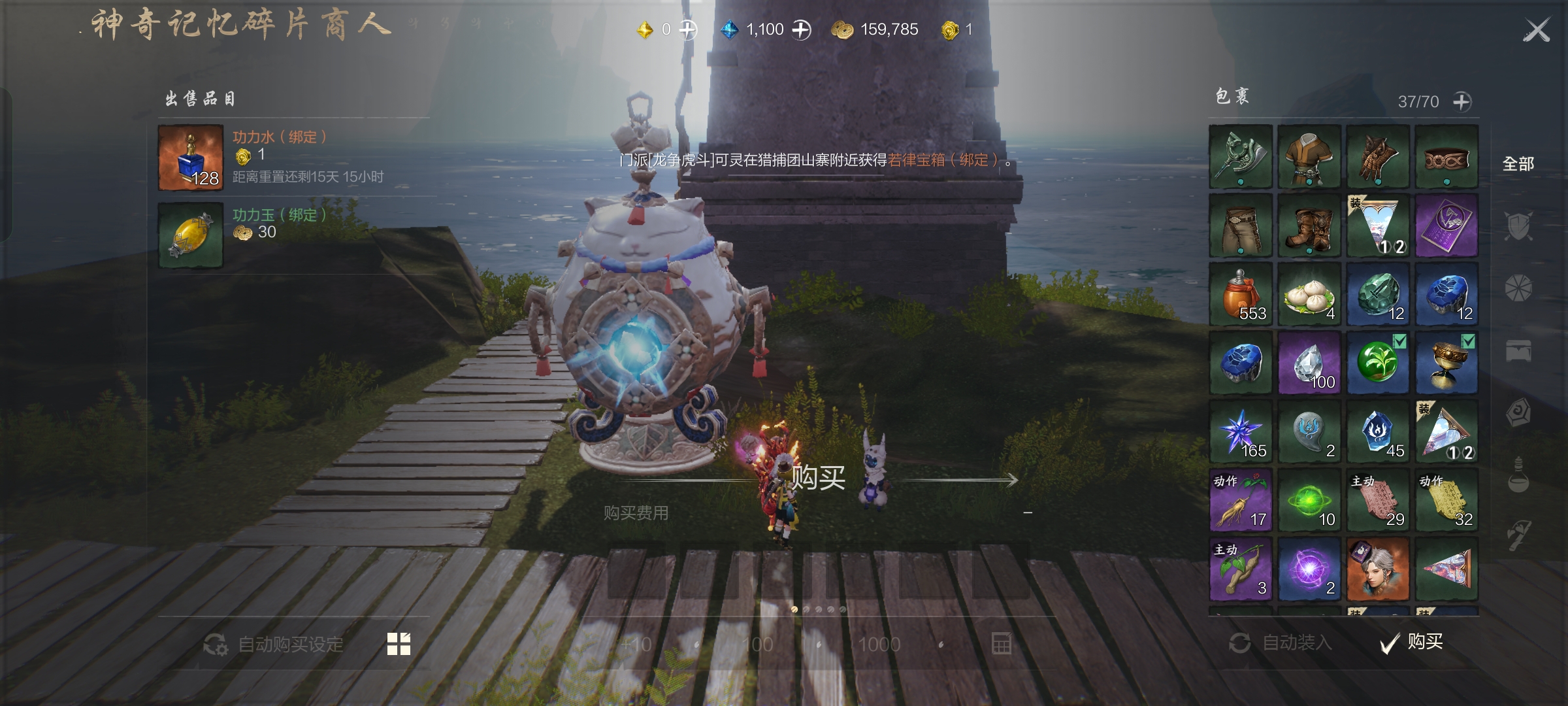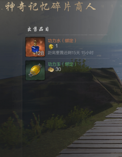 或在南边海岸岛屿,找到【NPC-神奇记忆碎片商人】白衣巴隆洛洛,购买功力水。