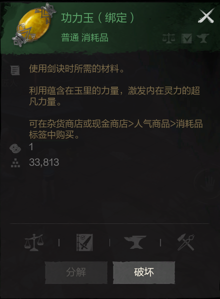每次开启剑诀都需要消耗功力玉道具。或者在南边海岸岛屿,找到【NPC-神奇记忆碎片商人】白衣巴隆洛洛,也可以购买功力玉。