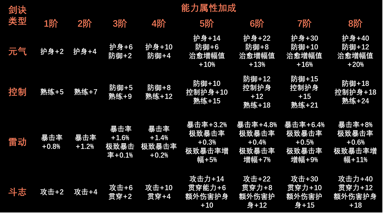 以下是1阶-8阶的属性加成表,供灵芝们参考