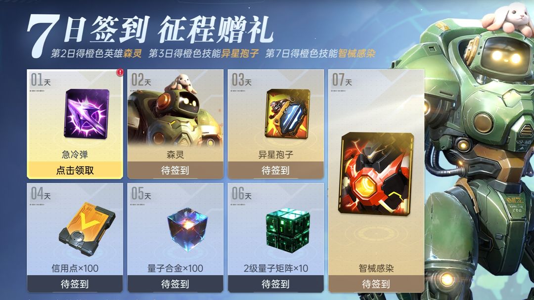 >>登录7日领橙色技能【智械感染】