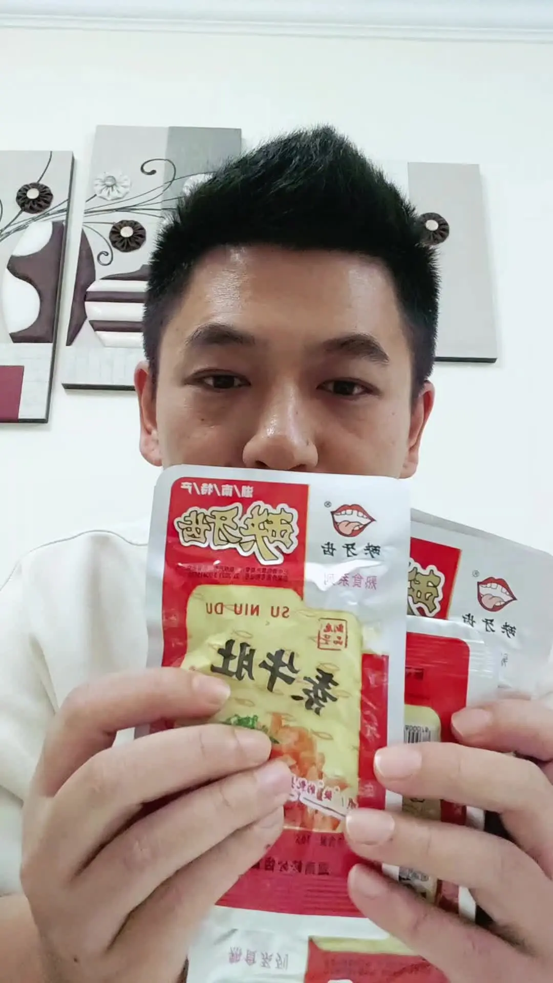 博主发起缺牙齿素牛肚挑战,尝试后表示不要轻易尝试,从博主的搞怪状态能看出这款素牛肚带来的“冲击力”,缺牙齿素牛肚是这款挑战的核心零食。