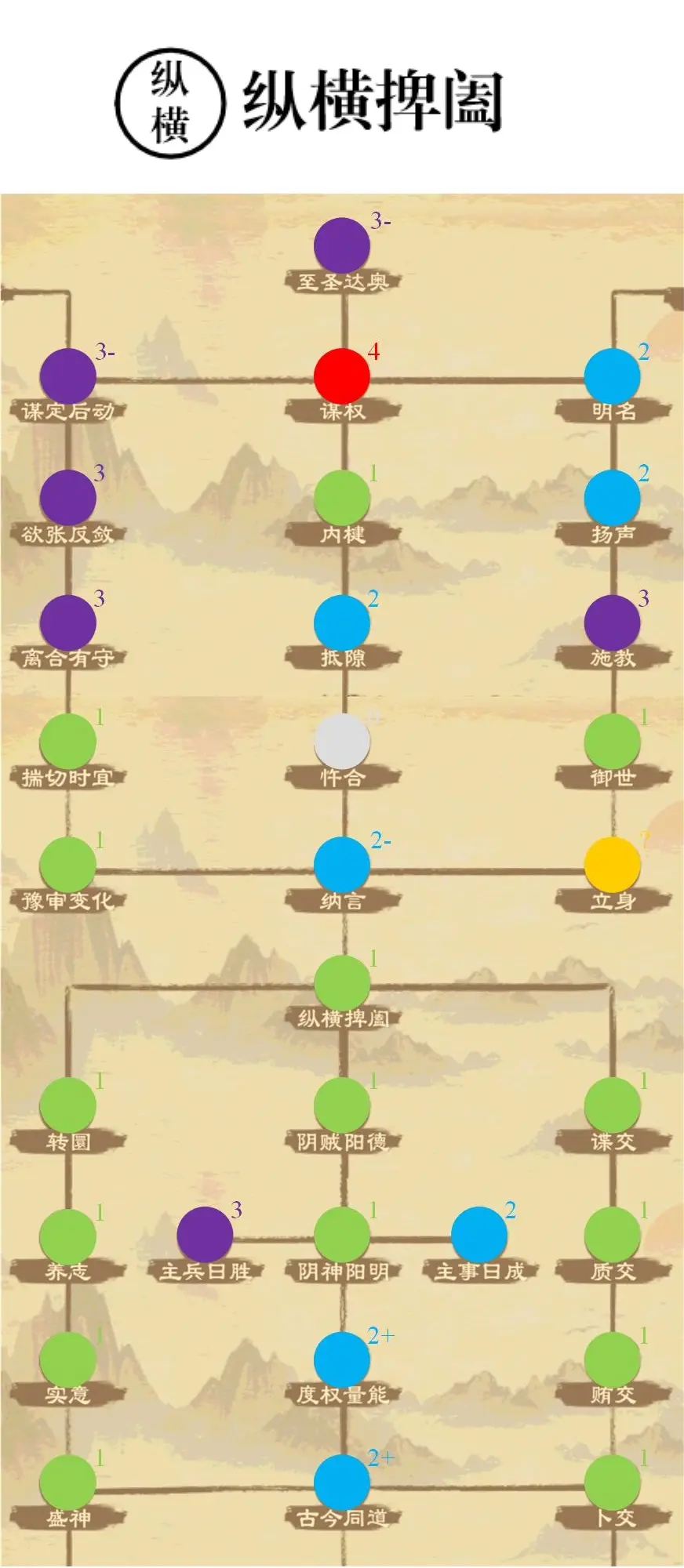 纵横家主修外交,主要是交涉相关政策。非常优秀的流派,具有大量强力政策,交涉能力的提升也可以有效配合军事扩张。