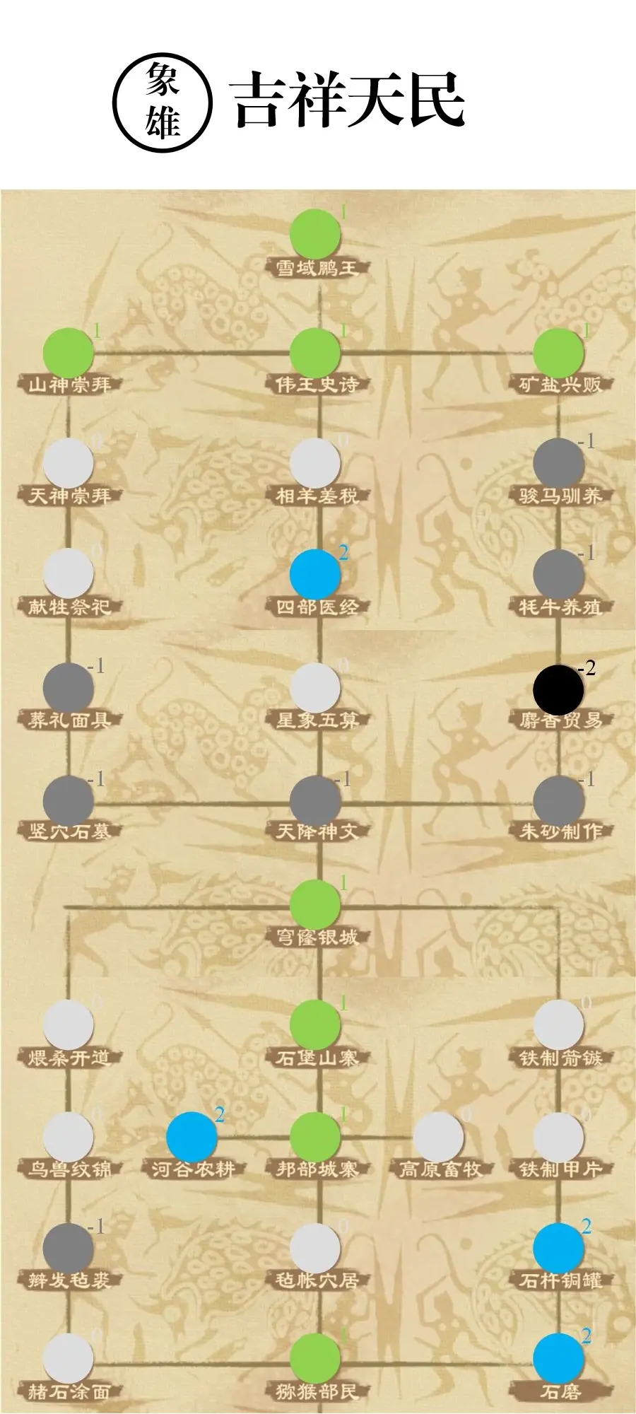 天人合一:最高地形加成政策,最强“农家”政策之一,初始状态对大部分城邑粮产提升在20%-30%之间略低于草本经,但对缺少河流的不良农业用地加成效果明显。