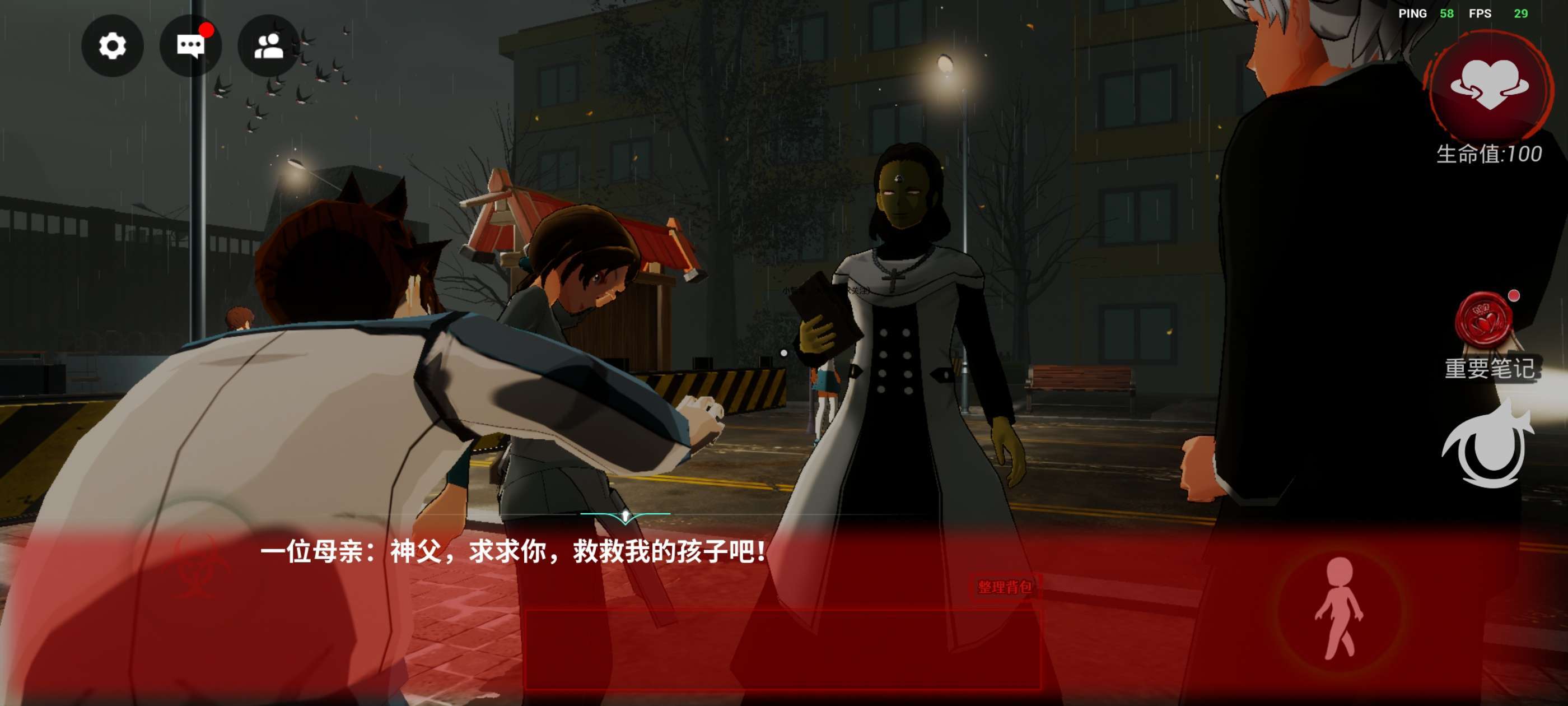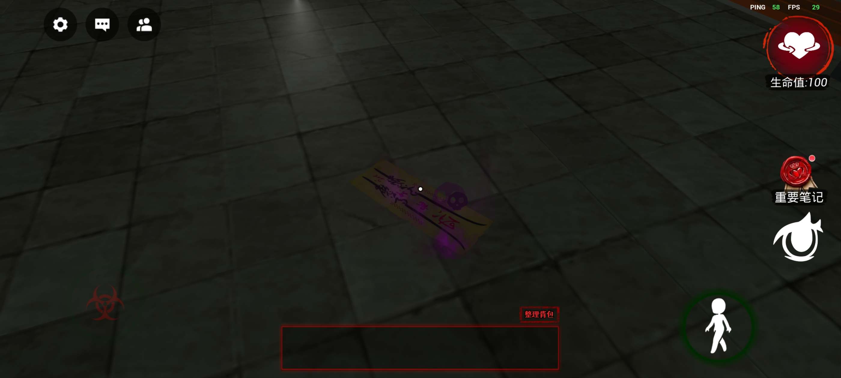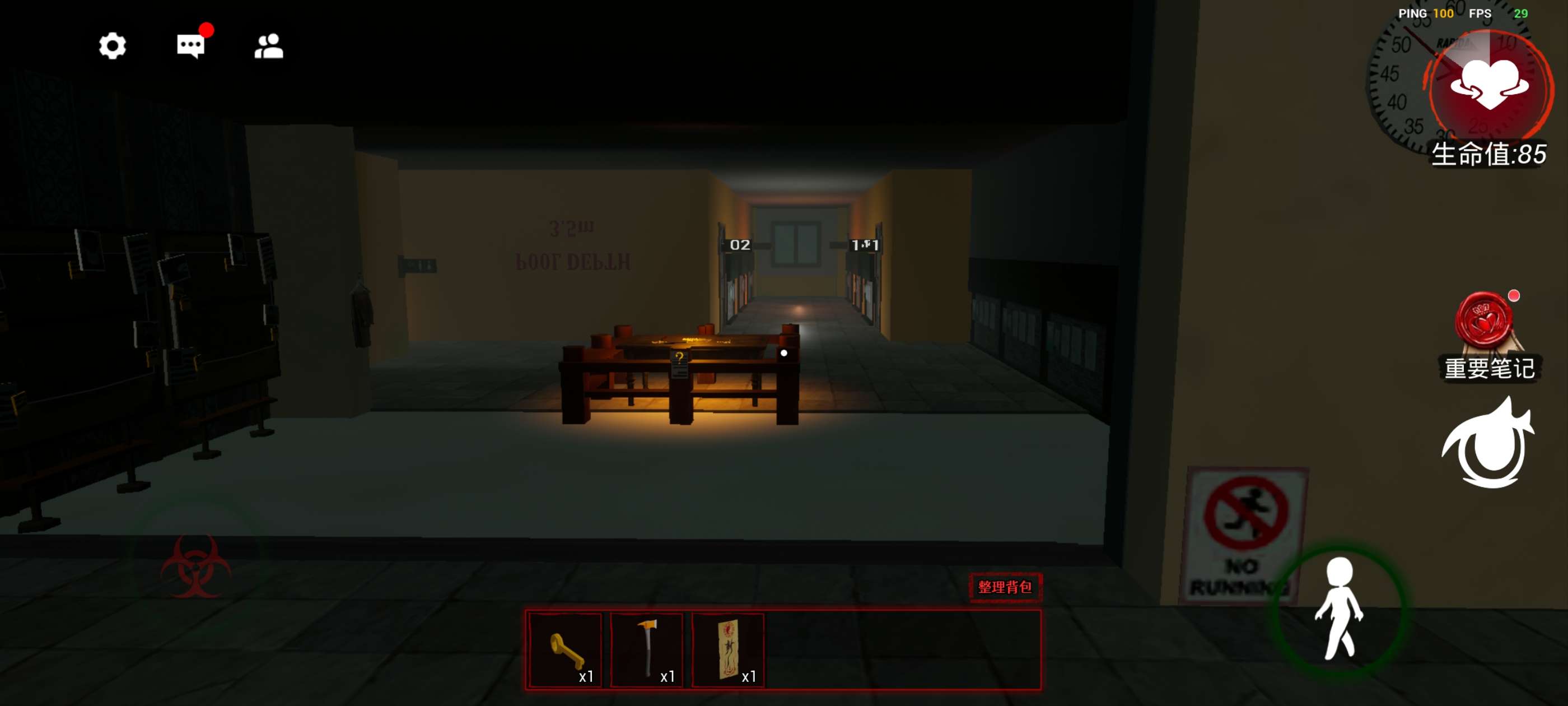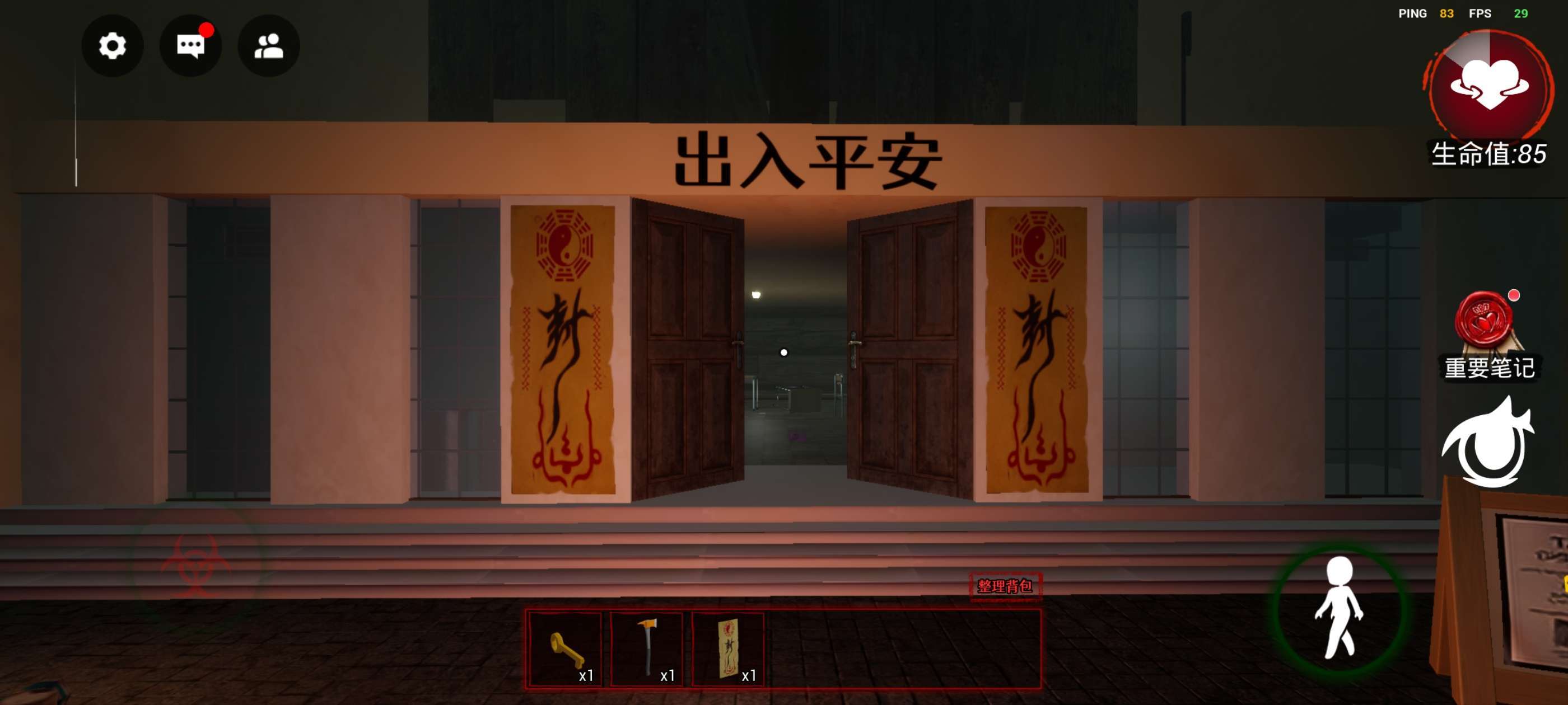 左下方控制人物移动,右上方生命值,如果为0则迷失,下方的《重要笔记》非常重要,很多时候会提供重要线索!再下方的眼睛按钮可以调节视角,推荐第一人称!!!