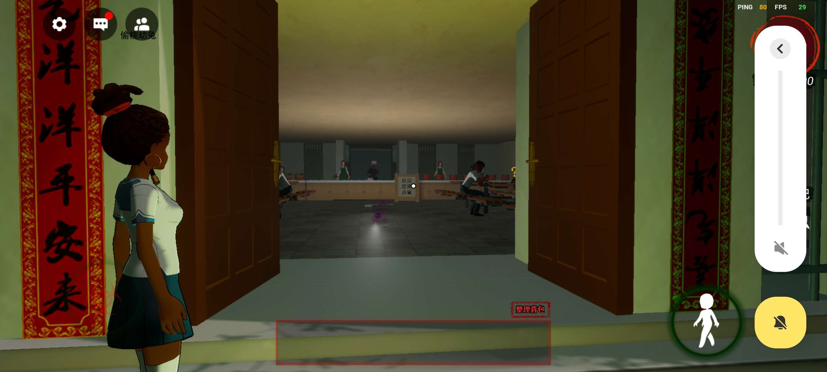 继续向前,一位阿婆和你打招呼了,之后去食堂,靠近门时会有一段剧情。