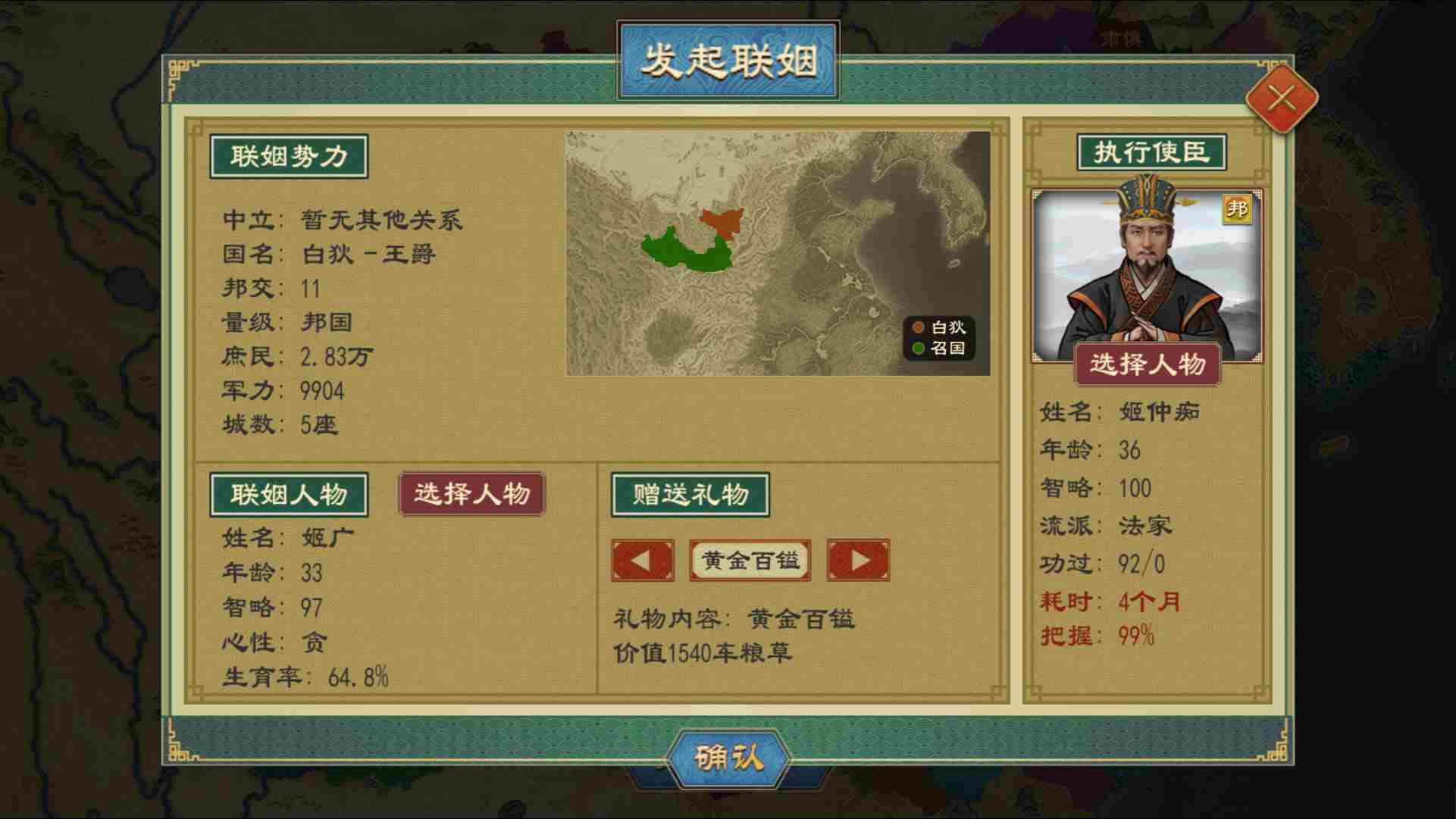 *需注意,与他国联姻需与他国非同姓、非敌对关系;联姻对象需为宗室女性