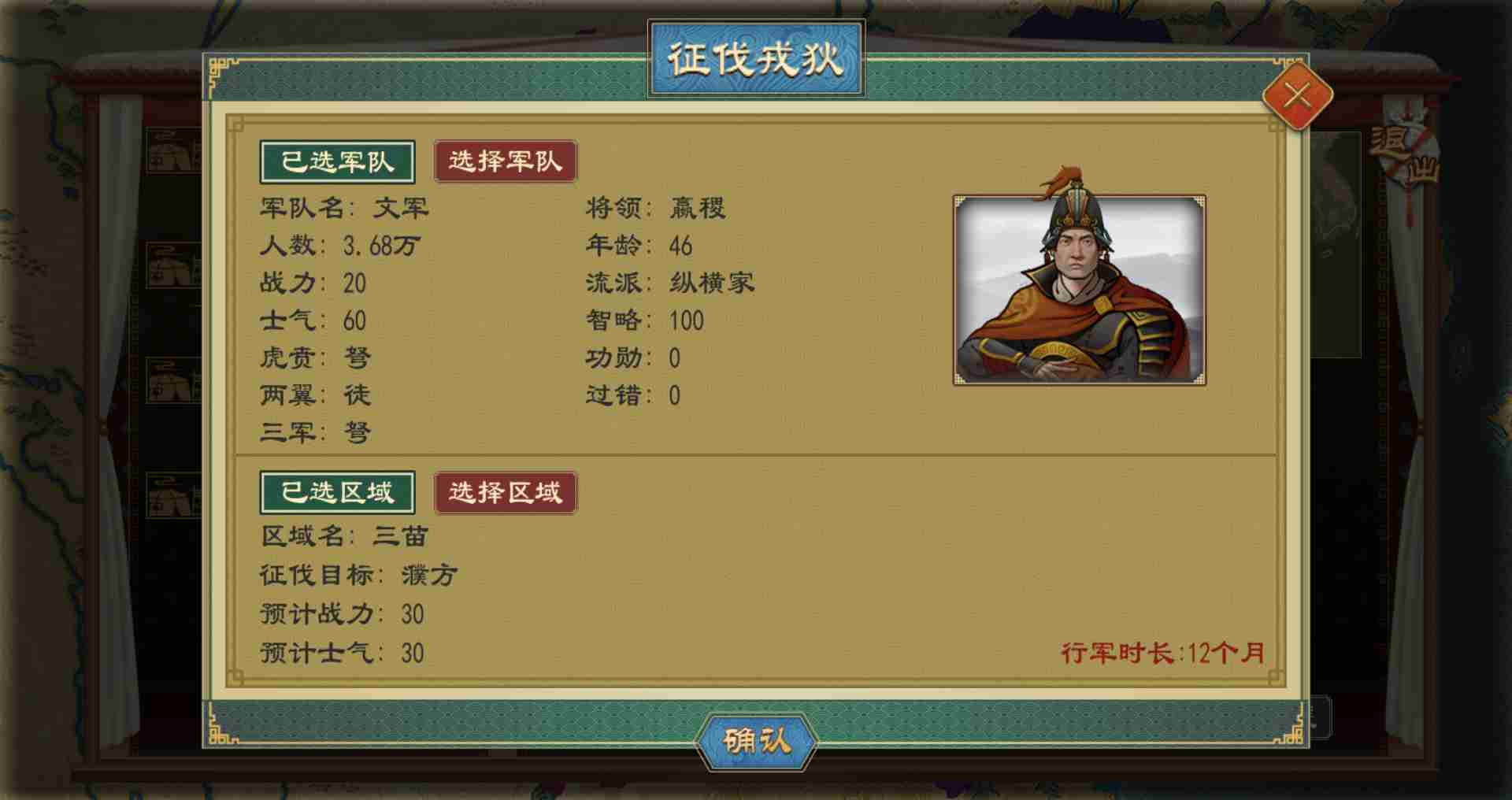 操作路径:【戎狄-派兵征伐-选择军队-选择区域-确认】