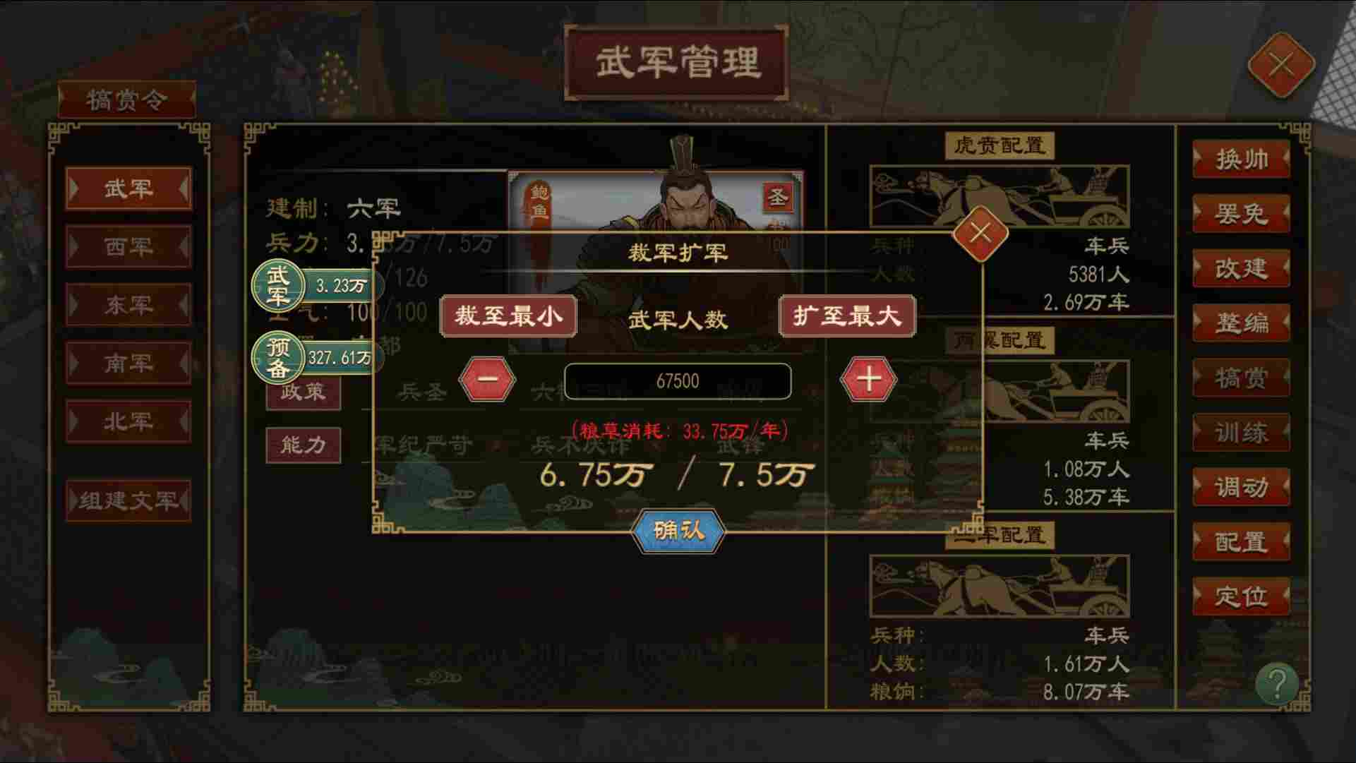 在军队管理界面点击左侧组建X军来组建一支新的军队。