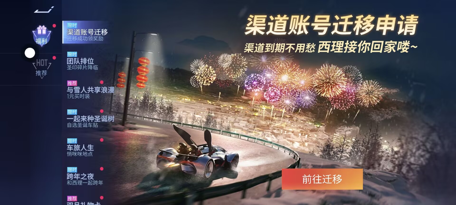 准备好以上资料后,进入原渠道游戏内“福利”页签-“渠道账号迁移”页面,点击“前往迁移”。