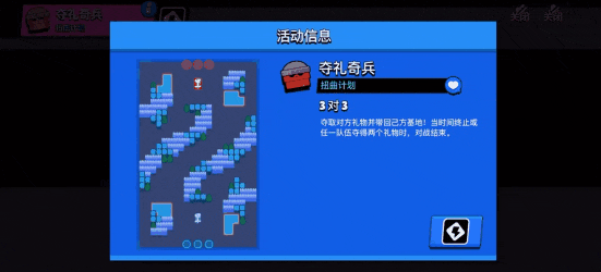 小技巧:这个模式跟涂鸦乱斗有很多相似之处,只是人物刷新会更随机,获取礼物后,宜将其带往己方复活方向。