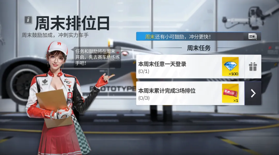 本周末登录游戏完成任务即可获得免费十连抽以及100钻石,还有周末专属鼓励助力车手冲分,赶快前往【如愿车展】将这辆北欧幽灵拿下,在排位赛中一展身手体验超越速度的极限吧!