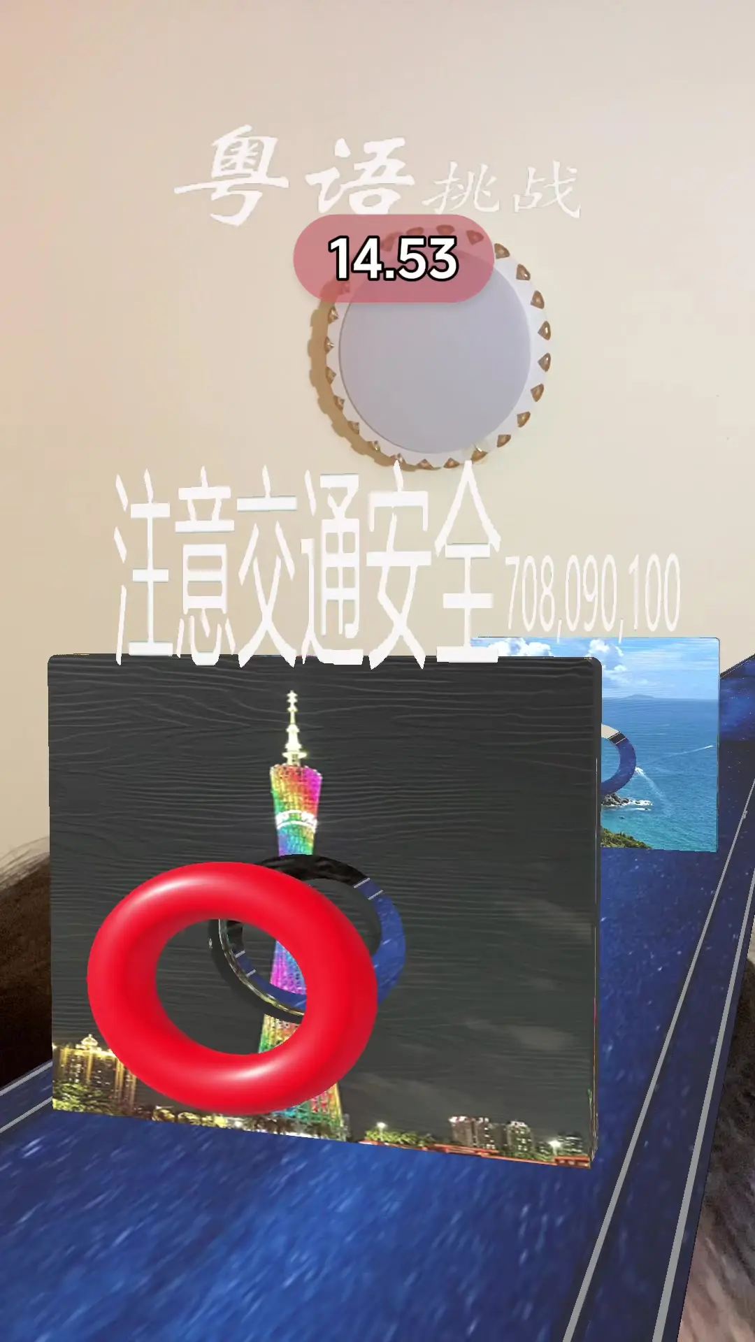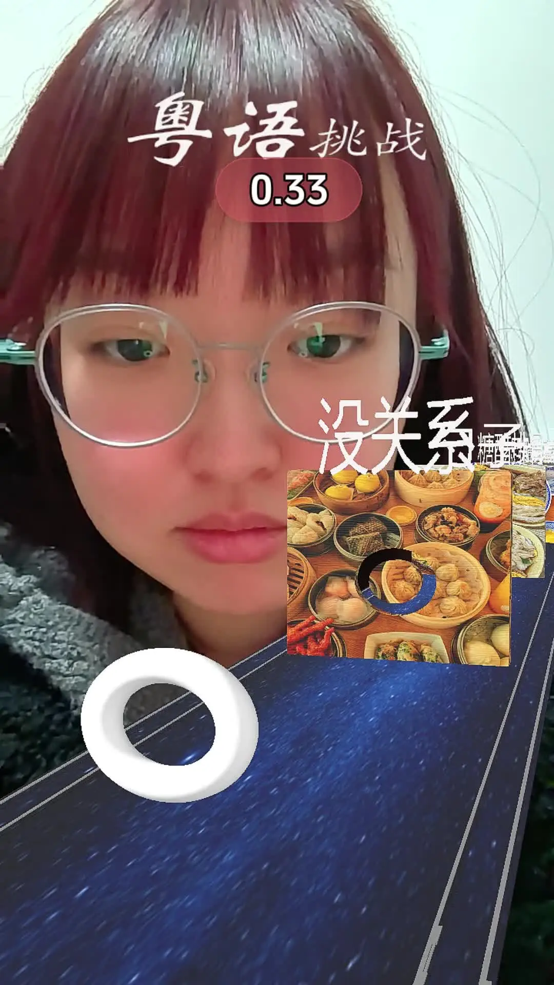 这是一则粤语挑战的内容,展示了挑战过程中出现的“对不起”“谢谢”“你好”等粤语常用词汇,呈现了趣味的粤语挑战玩法,适合想要接触粤语的用户参与。
