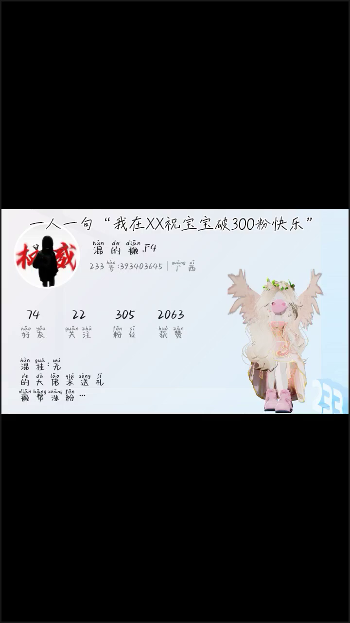 一人一句“我在XX祝宝宝破300粉快乐”