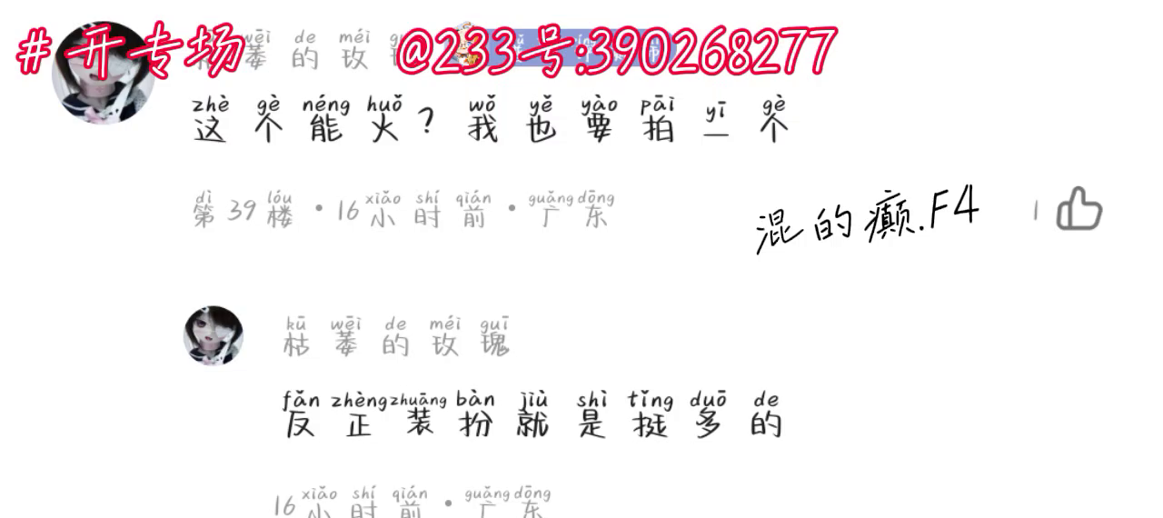 “来介绍一下混的F4 混的F4还差一个人‘谁要来?’‘在评论区里说哈!’”