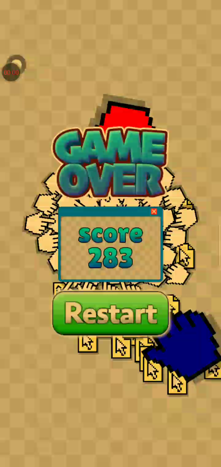 滑动屏幕移动光标。 围绕玩家光标旋转的武器可以用来击打手形敌人以击败它。 可以通过拾取敌人掉落的物品来增强武器。 当敌人击中玩家时,武器会减少,当所有武器消失时游戏结束。 小心大型敌人,因为它们非常强大。 享受光标战斗