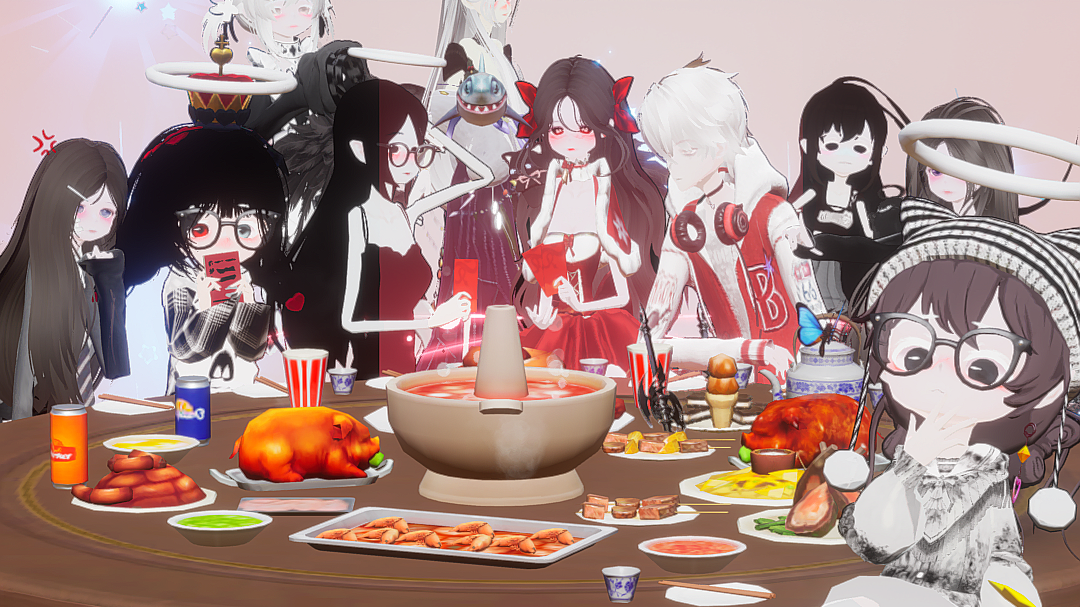 大家一起吃年夜饭ฅ ̳͒•ˑ̫• ̳͒ฅ♡ (挑了几位好友)