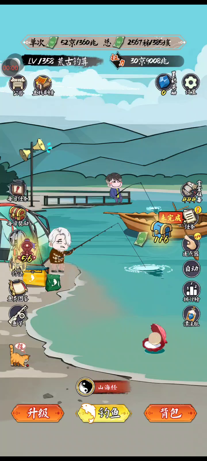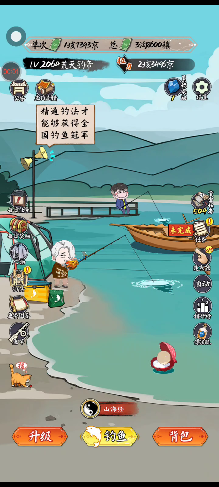 《小鱼人战争》是一款轻松休闲的放置钓鱼小游戏 游戏内有各种各样的鱼等你来钓 你需要通过不断提升自己的等级,学习更多的钓鱼秘籍才能把珍惜的,远古的,超自然的大鱼钓起来放进自己的鱼塘里。 这真实一款超级爽完的钓鱼游戏,有趣而且很精彩哦~~~!!!