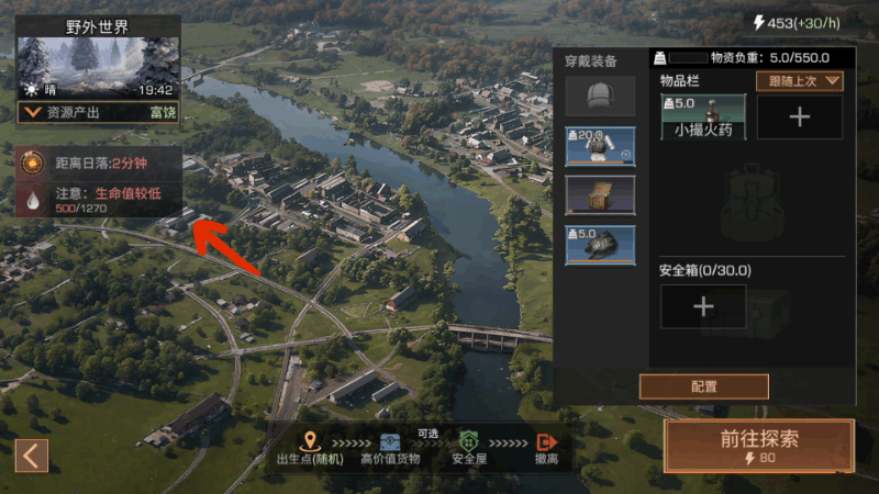 出发前你的低生命、饱腹不足状态
