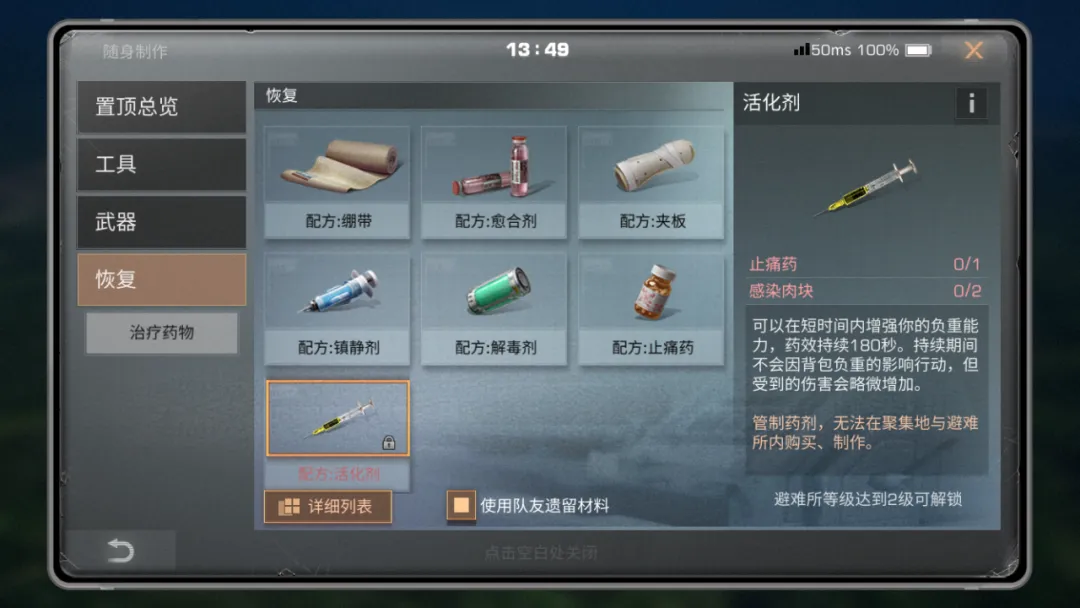 只能在野外通过随身配方制作