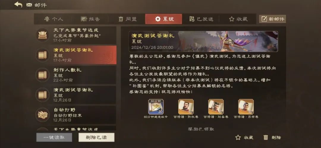 除了直接送武将以外,考虑到部分主公此前没有孙权开荒而落下等级进度,我们已在今天中午12点通过邮件,为各位主公送上1388个中品兵书,帮助武将快速提高等级!(不过需要注意的是,这些兵书仅适用于30级以下武将)。