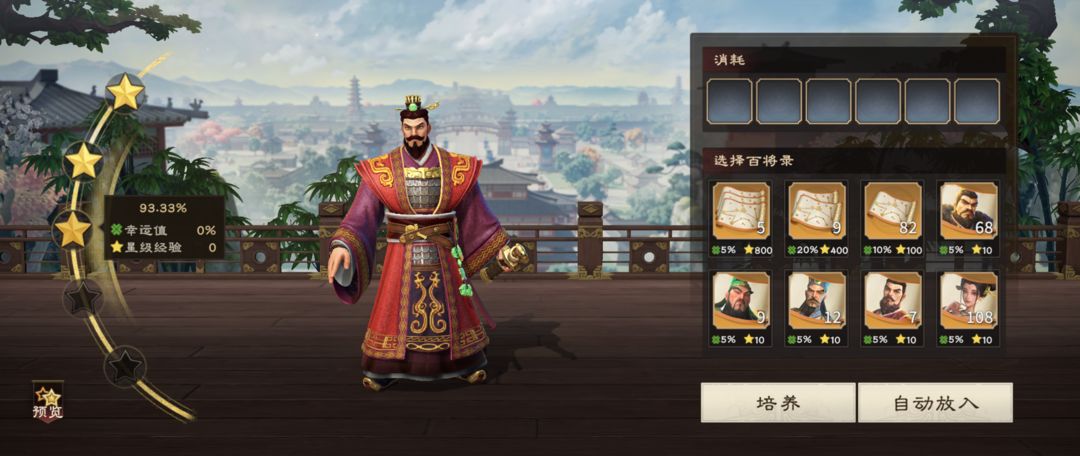 武将20级后,先使用一卷百将录逐渐将其升至2星93%进度左右。