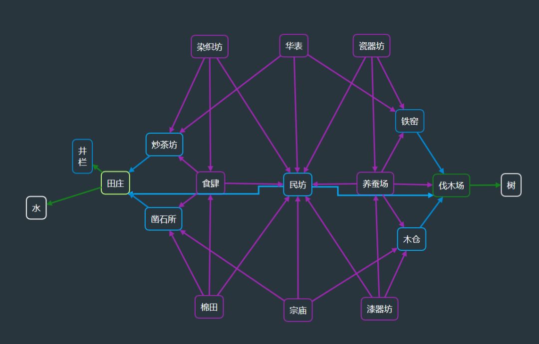 1. 绿色图纸:田庄图纸、伐木场图纸,二者分别可覆盖水(井栏)和树;