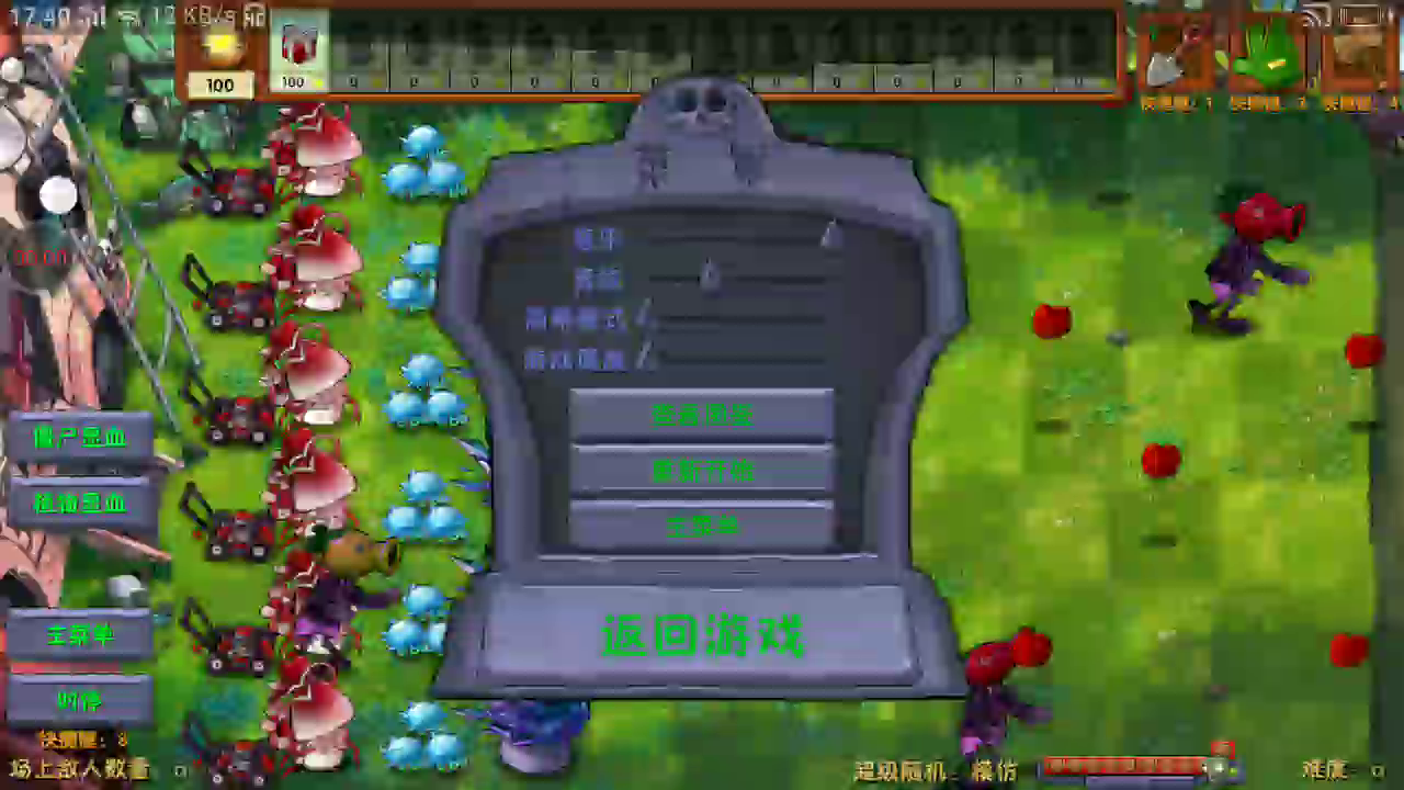 温馨提示: 本游戏是由B站UP主蓝飘飘fly 开发制作的同人游戏,233乐园对该游戏进行收录供大家游玩体验。 下载使用产生的版权问题请自行负责,233乐园不承担任何法律责任,如果您喜欢该游戏请支持官方正版。233乐园不拥有任何权利,其版权归该游戏的合法拥有者。如果该游戏侵犯了您的版权,请将相关版权证明或授权证明发送到邮箱,我们将在24小时内删除该游戏。 ------ 当夜色降临,游戏舞台转换至神秘的黑夜,一系列前所未见的夜间植物闪亮登场。这些新面孔不仅种类繁多,而且各具特色,拥有独特的能力,为你的防御阵容带来无限可能。面对更加强大的僵尸敌人,你需要运用智慧,精心搭配植物,展开一场场紧张刺激的防守战。 2.1.5更新内容: 更新内容: 1、新增植物: 普通: 火焰西瓜投手、吸金磁、超级机械保龄球坚果、铁豆小喷菇、裂荚小喷菇、阳光磁力菇、魅惑磁力菇、磁力大喷菇、铁桶大喷菇、橄榄球大喷菇 特殊: 模仿者 究极: 究极魅惑菇、红宝石伞、樱桃南瓜、蒜神、究极五叶草、灰烬三线、浴火三线、魅后菇 2、新增僵尸: 钻石盲盒僵尸、机枪海豚僵尸、冲锋黑曜石小鬼僵尸、究极黑曜石巨人、武装巨人、豌豆海豚僵尸、三爷铁豆僵尸 3、优化内容: -花盆可以直接放在植物下方 -现在可以通过在豌豆小喷菇上放豌豆融合成双发小喷菇 -随机模式前期不再出究极僵尸 -降低瓜跳的大跳距离,同时大嘴可以吃任何跳跳 -大幅降低了使用究极樱桃射手和究极窝炬造成的卡顿现象 -加入了按Q显示植物血量,按W显示僵尸血量的功能,咖啡豆改为E键 -花园拓展,现在可以翻页,可以开出紫卡植物和金植物,加农炮除外 -将带究极植物的模式单独分开,可以在主界面点击【旅行钥匙】进入 -我是僵尸模式新增自定义模式,存档位置和原自定义关卡存档位置相同,名称为CustomIZ.json 2.1.6更新内容: 1、修复了生存模式“更多的僵尸来了”后放置僵尸盲盒导致下一轮无法过关的bug 2、修复了叶子保护伞、超级伞血量异常的bug 3、优化了叶子保护伞弹僵尸的扣血量,1个僵尸时扣100,2~4个僵尸时扣150,大于4个时扣250 4、修复了大麦可以变究极鱼蛋bug 5、修复了阳光过多导致变为负数的bug,现在上限为99999999 6、修复了手套在我是僵尸模式存在冷却的bug 7、修复了诸神模式肥料不会给一格全部植物回血的bug 8、修复了三叶草碰撞体积异常的bug 9、修复了吸金磁偶尔不能吸子弹的bug 10、修复了僚机不能优先攻击飞行僵尸的bug 11、优化了游戏失败界面,现在生存模式可以选择直接重新开始本轮游戏 12、修复了给魅惑磁力菇小丑盒会生成普僵的bug 13、修复了究极魅惑菇特效丢失的bug 14、黑曜石高坚果亡语修改为受伤时由全场所有黑曜石高坚果分担伤害