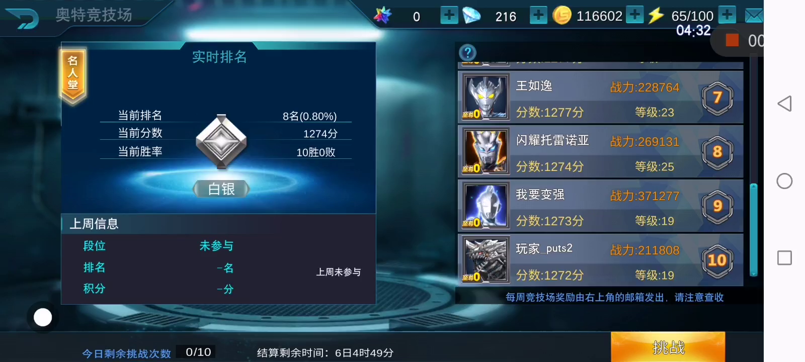 排位赛也不难嘛,第五天就第八名了!