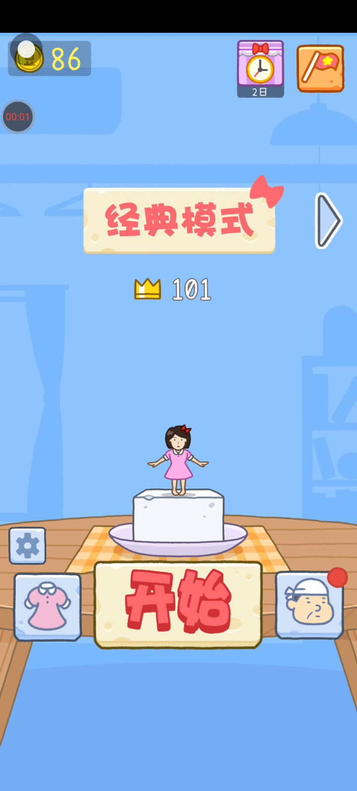 豆腐女孩,随心而动,魔性节奏,停不下来!看准豆腐出现的时机,让女孩稳稳落到豆腐的中间,让堆积如山的豆腐堆的更高吧(*´∀`)~ 【游戏特色】 ◆指尖的可爱游戏 只需要动动手指,轻松上手。美妙的心情和女孩跳动的节奏一起,向完美跳跃和更高的分数挑战吧! ◆ 上瘾的魔性玩法 超可爱的动画音效,乐趣无穷。多次完美跳跃,可以看到豆腐女孩180度旋转换手的超高难度动作表现。 ◆皮肤收集 豆腐解锁 用收集的金币在豆腐店买入豆腐,获得新的女孩形象,达成成就解锁新的豆腐背景,体验收集的乐趣吧 【游戏玩法】 1.点击屏幕进行跳跃,让女孩稳稳落到豆腐上 2.完美跳跃可以获得高分奖励 3.选择你喜欢的女孩和豆腐的形象吧