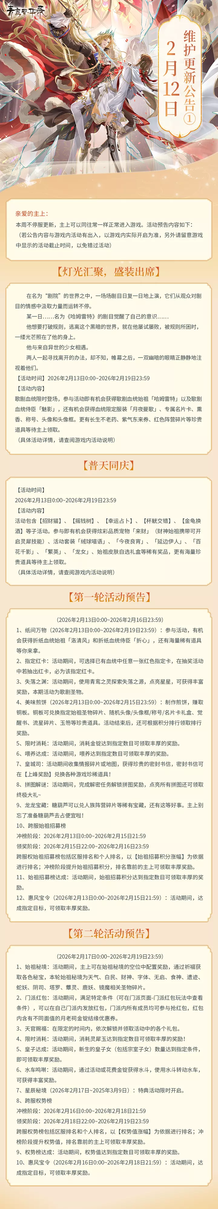 2月12日更新公告(上)丨全新歌剧血统
