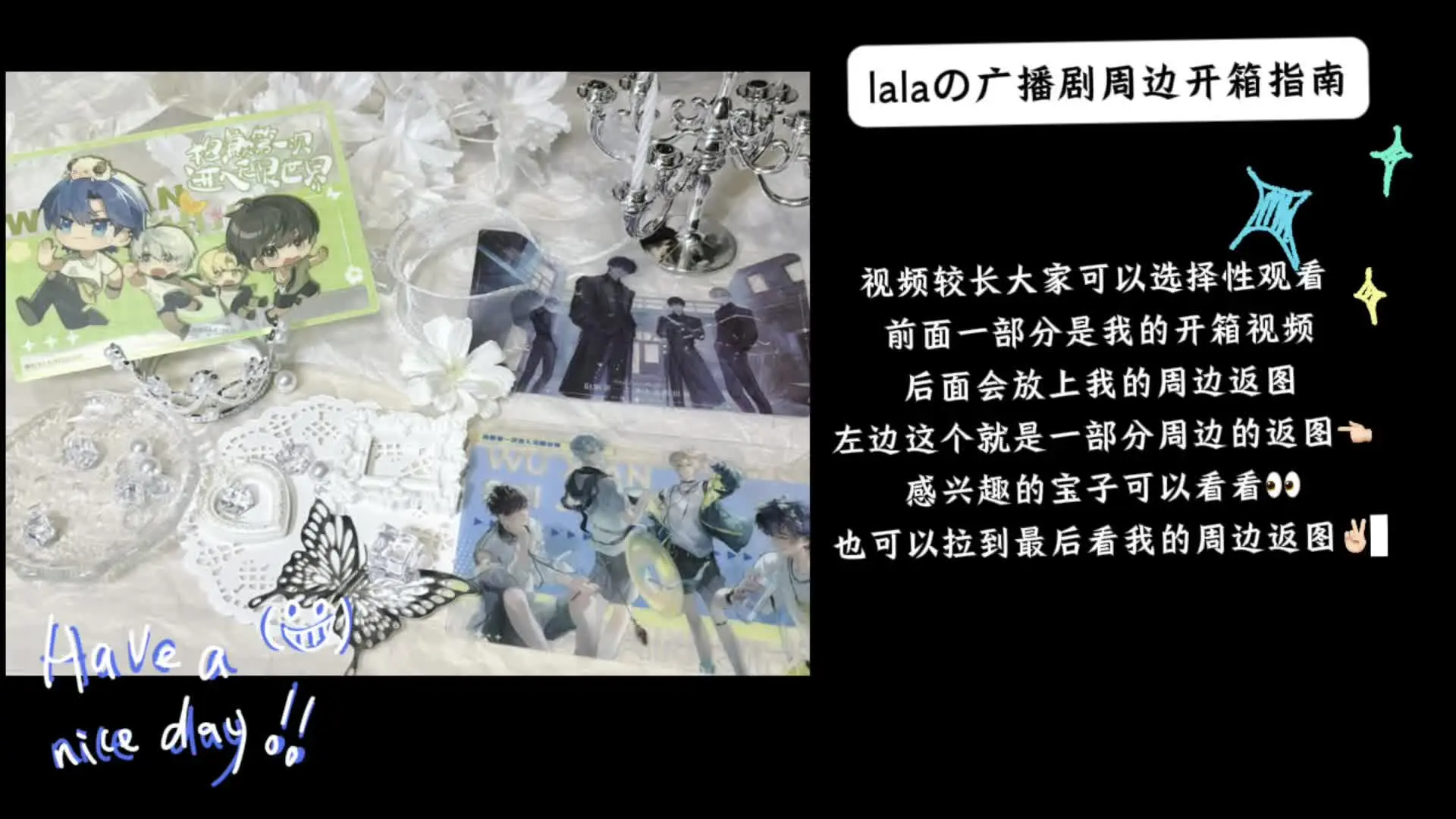 本次开箱分享了beautygoods家蝶与花系列的国产谷美小框,共6个颜色,撕膜后的亚克力材质清透blingbling,适配韩漫小卡,装卡后效果精美,很适合吃谷爱好者。