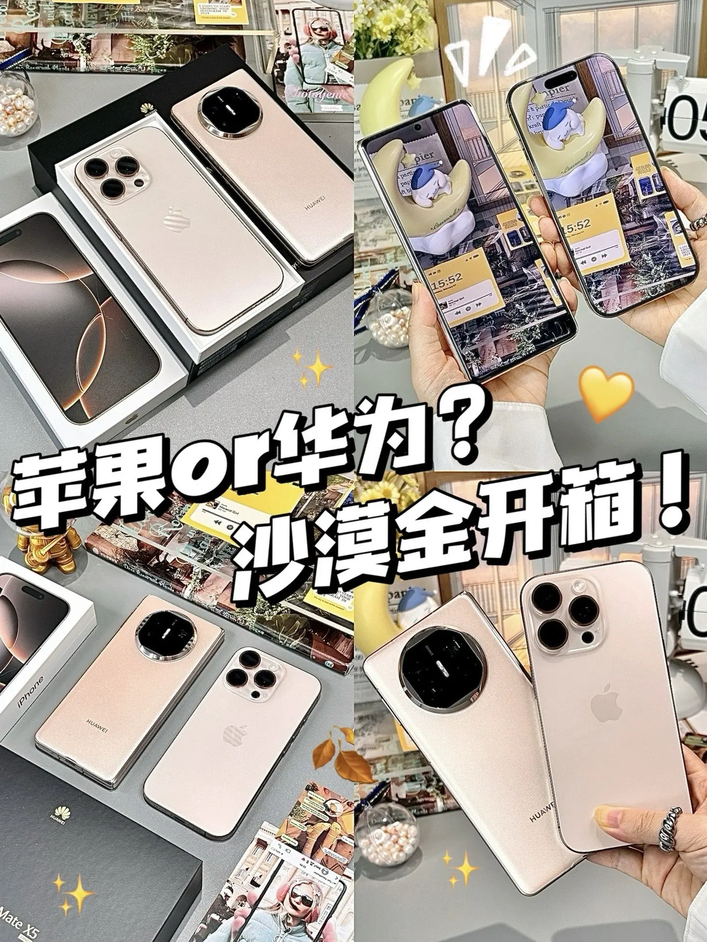 一口气开箱2台沙漠金~你选果子还是华子? ✨圆圆沉浸开箱 第1️⃣8️⃣0️⃣期: 同样是沙漠金色手机,你会选苹果系iPhone16Pro还是华为手机呢?告诉我…