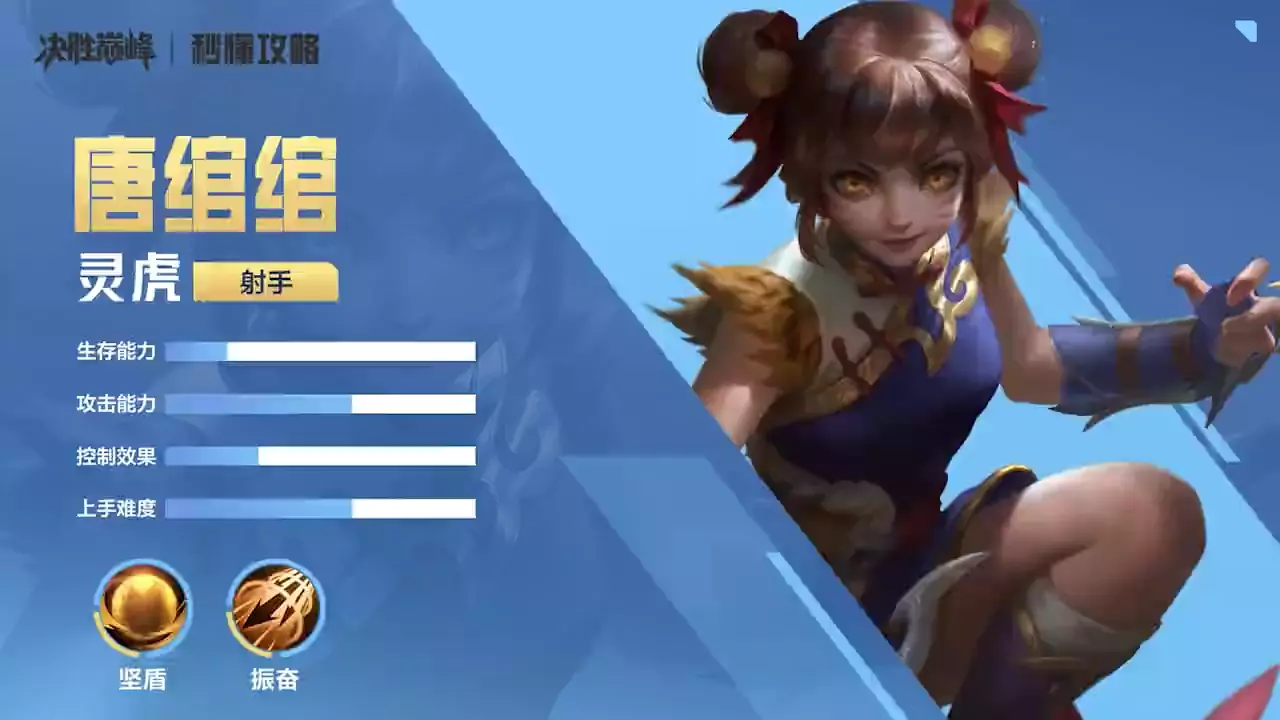 这是手游《决胜巅峰》的英雄教学,介绍了高机动性射手唐绾绾,包含她的英雄定位、技能详解、实用连招、出装与徽记推荐、实战思路以及克制关系等内容,帮助玩家掌握这位英雄的玩法。
