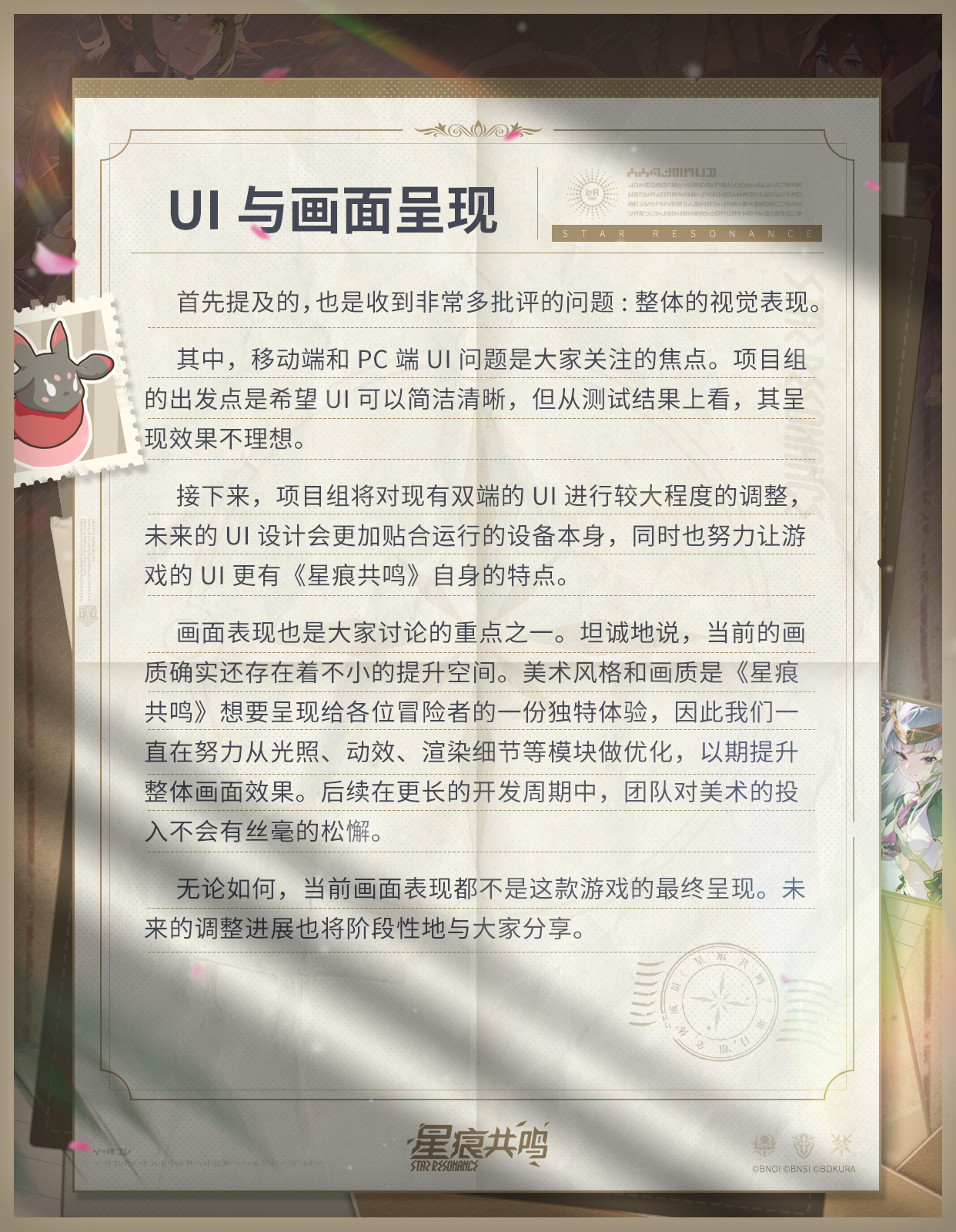 「星启测试」将于今夜正式结束,在2024年与2025年相交之际,请打开这份信件,收下来自《星痕共鸣》项目组全体成员的谢意。