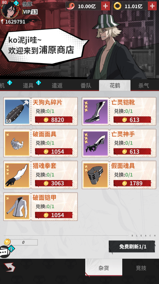 朽木露琪亚碎片0.31% 蓝染惣右介碎片0.55%
