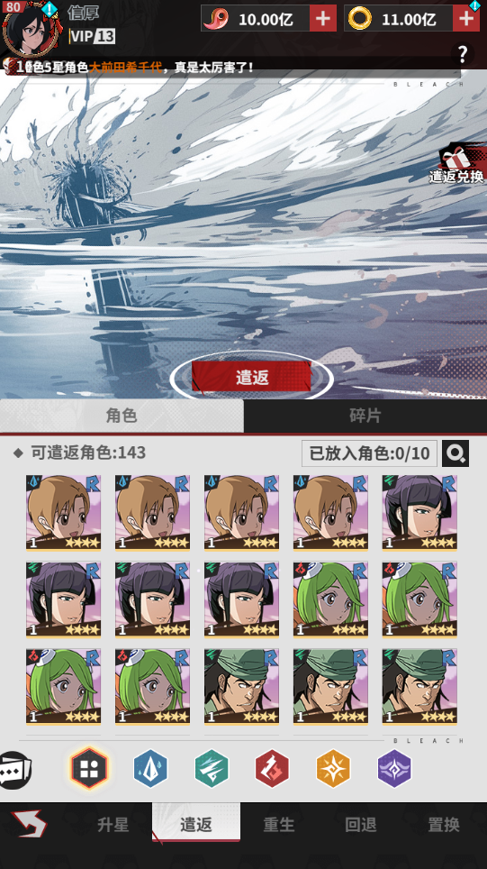 遣返角色碎片可获得少量资源;