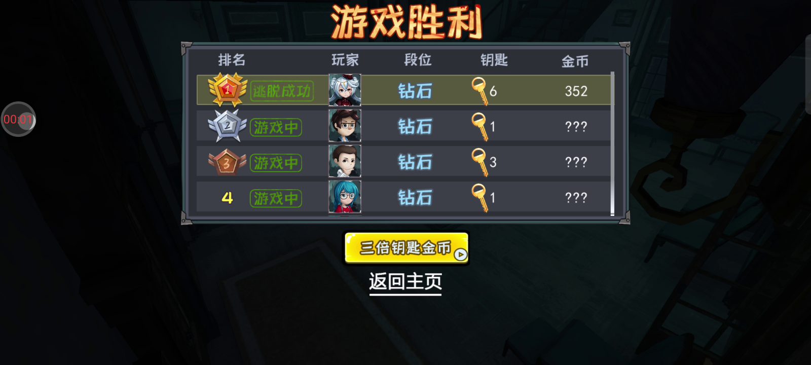 躲好了吗?我要来抓你咯” 几位小伙伴误打误撞闯进了荒郊野外的一处城堡,打扰了住在此地的怪物。赶快找到隐秘的角落躲藏起来,屏住呼吸千万不要被怪物发现!找机会集齐钥匙碎片逃离这个不毛之地吧! 《恐怖躲猫猫》是一款非对称的对抗游戏,玩法来自于黎明杀机、第五人格以及单机屠夫躲猫猫的结合,1V6的非对称对抗,可扮演抓捕者或者逃脱者。 逃脱者:逃脱者的玩法为单人赛,分为搜寻阶段和躲藏阶段,在搜寻躲藏阶段可以寻找箱子开出能够逃脱出去的钥匙,收集到目标数量即可胜出,而搜寻阶段结束则必须要寻找躲藏起来否则会被抓捕失败。 抓捕者:抓捕者胜利条件为在最终阶段,逃出去的人数小于3人,抓捕者在搜寻阶段,可以观看设置在房间内各个位置的监控,观察逃脱者的躲藏以及搜寻钥匙的情况,在抓捕阶段则出动去抓捕逃脱者。