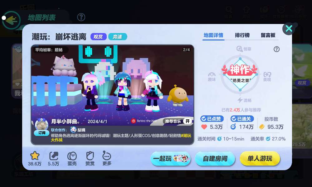 推荐地图。潮玩:崩坏逃离。这个图不仅简单有趣好玩,还可以cos角色