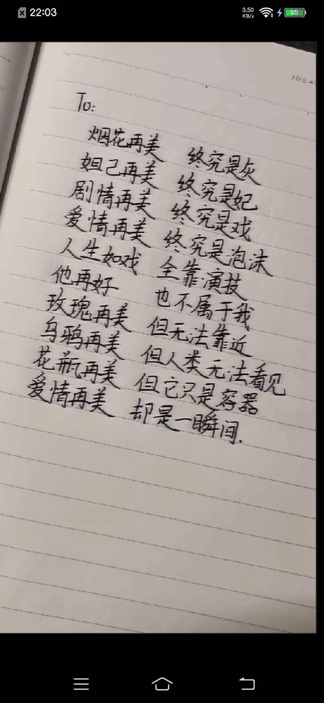 你最好能看到我这个视频,我现在有我自己的对象了,我也是喜欢你很久的,我应该就是你的白月光吧,毕竟当时我们是多么恩爱,希望在你失踪的这九个月中你能回来,我真的很想你。