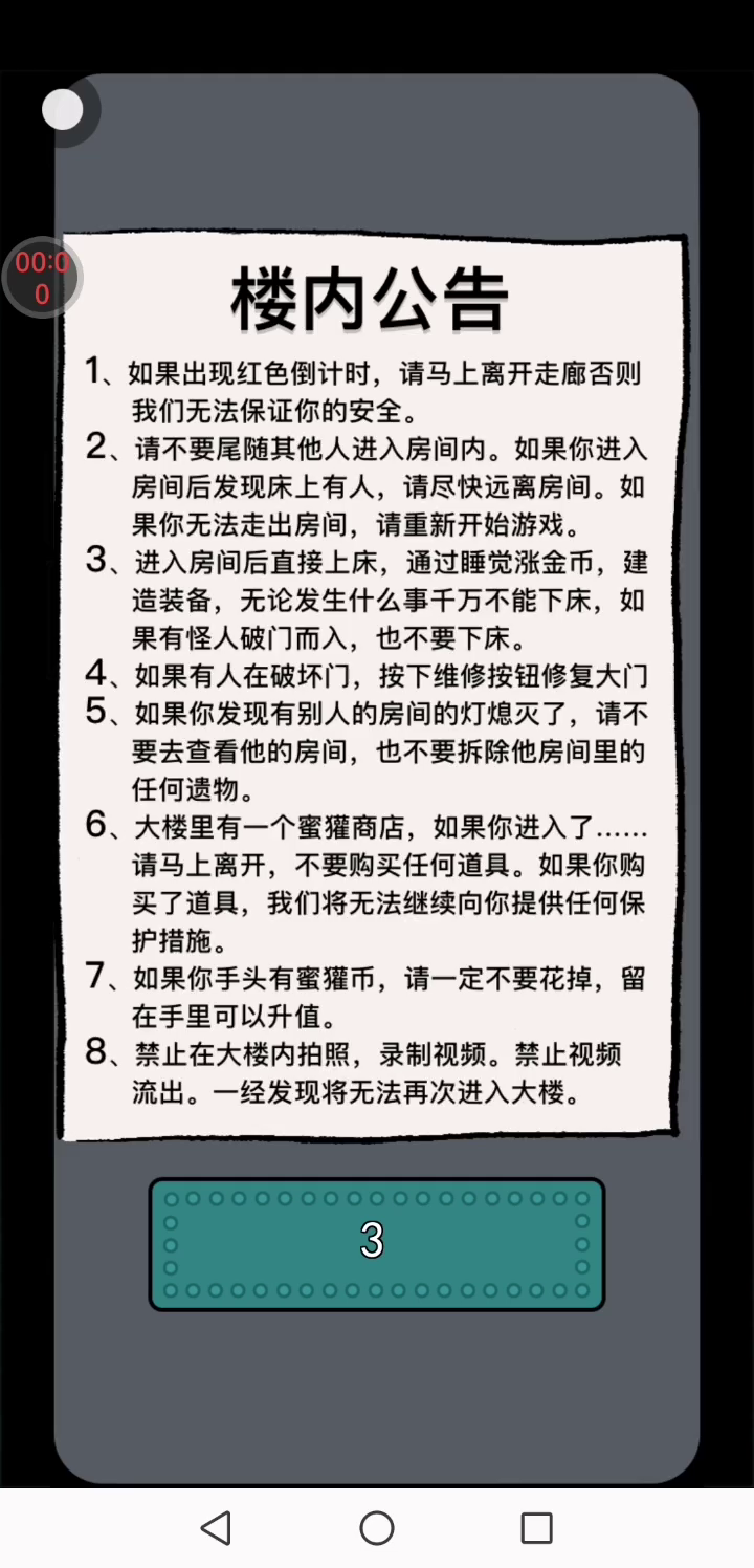 《猛鬼宿舍》是一款2D塔防小游戏。游戏中玩家需躲避猛鬼的追捕,寻找适合自己的宿舍躲避,并发展经济建造炮台,抵御猛鬼。游戏中玩家只可以在房间中的空地板上进行建造,玩家点击空地板后,出现建筑菜单。游戏中玩家需要根据自己当前的经济选择性建造建筑,发现一条符合自己发展的道路。玩家需要将鬼击败或者抵御至天亮方可获胜,反之鬼抓到玩家则玩家失败。