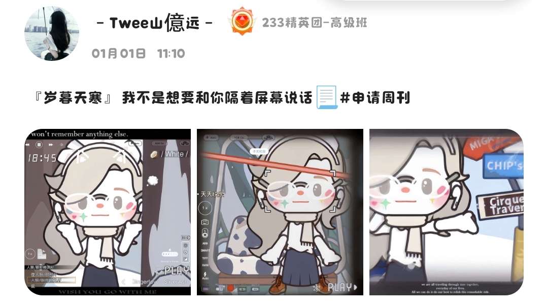 本期周刊上榜玩家将获得奖励:233会员*7天+头衔“周刊创作之星”15天+精华帖(以获得精华的上榜作品将额外获得乐币*233)