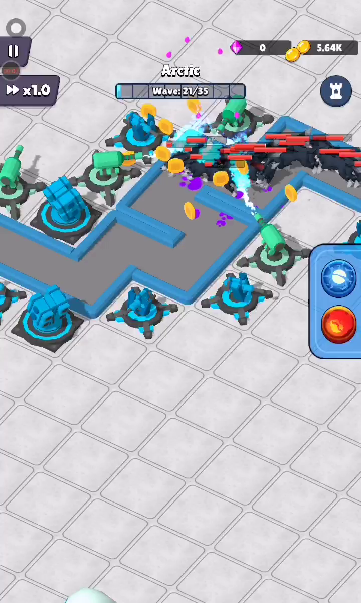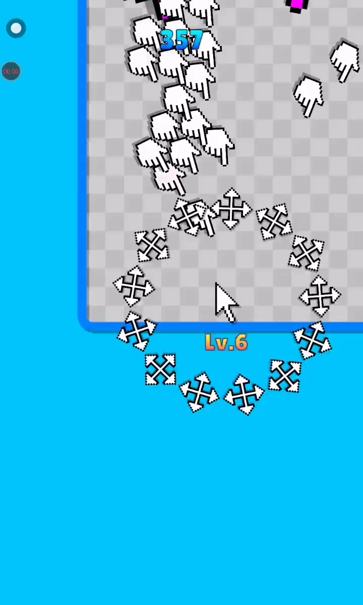 滑动屏幕移动光标。 围绕玩家光标旋转的武器可以用来击打手形敌人以击败它。 可以通过拾取敌人掉落的物品来增强武器。 当敌人击中玩家时,武器会减少,当所有武器消失时游戏结束。 小心大型敌人,因为它们非常强大。 享受光标战斗