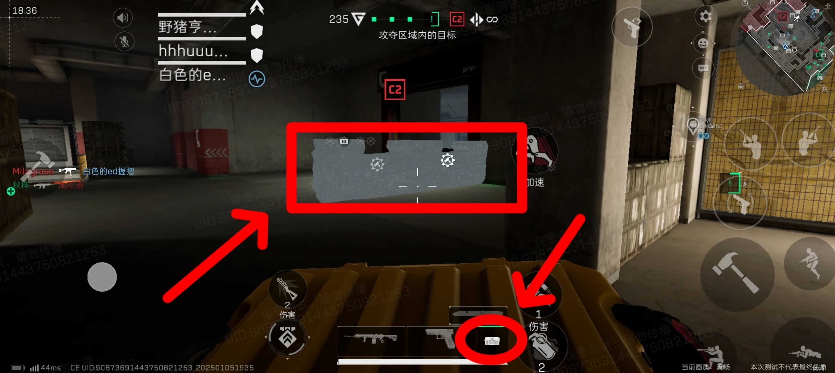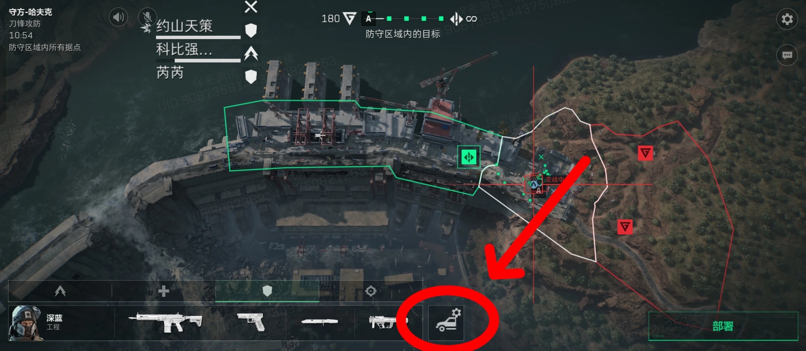 新增防御工事建造,在局内副武器按钮旁边多了一个建筑按钮,点击可以看到可以放置工事的位置,靠近即可建设。工程干员的建筑按钮就是维修枪,点击即可看到位置,靠近点击攻击(建设)按钮,即可触发建造动画,建造成功