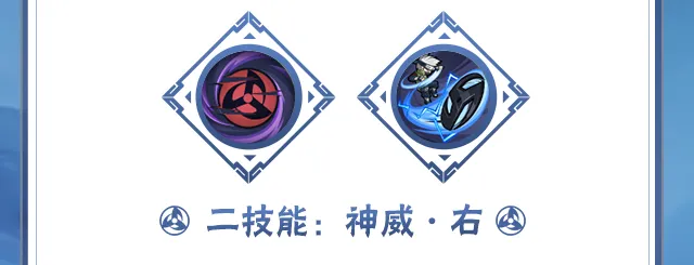 特殊普攻上/下2A释放雷切突进期间,可接一技能,须佐卡卡西会进入神威空间,随后可改变Y轴再次出现并使用神威雷切进行突进,命中后会将敌人吸入神威空间。
